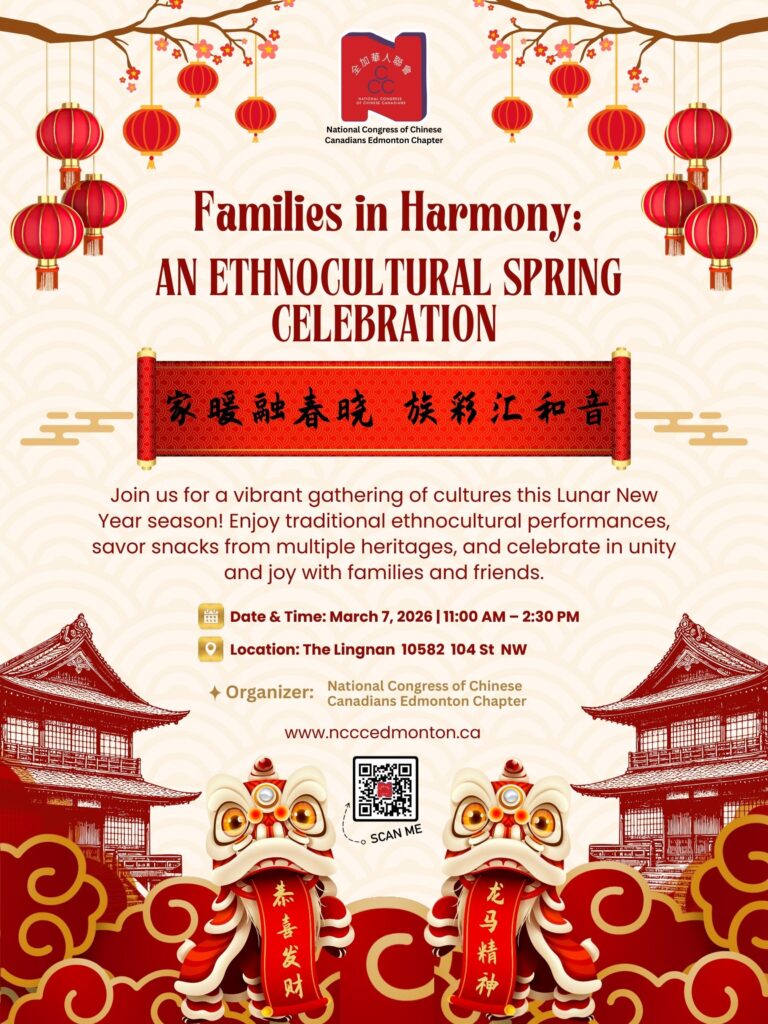 This event is organized by the National Congress of Chinese Canadians Edmonton Chapter. We invite you and your family to join us for an afternoon filled with harmony and celebration!